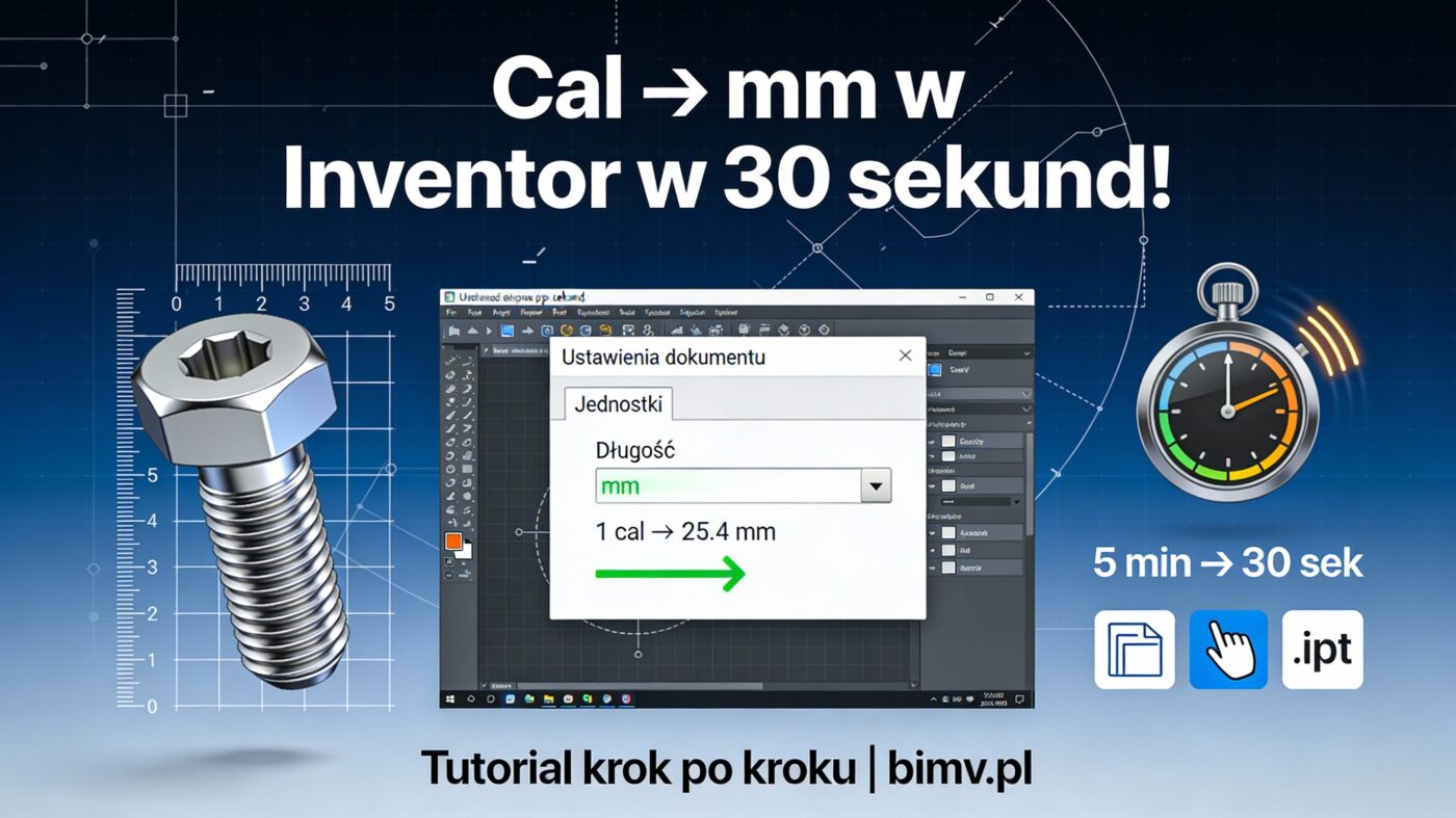 Zmiana cali na mm w Autodesk Inventor to jedna z pierwszych konfiguracji, przed którą staje polski inżynier. Otwierasz nowy plik części (.ipt), zaczynasz szkic i… program uparcie proponuje Ci wymiary w calach (in). W środowisku projektowym opartym o system metryczny, jest to prosta droga do frustracji i błędów.