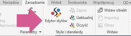 - Edytora stylów (dla wymiarów na rysunku 2D).