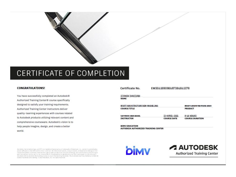 Oficjalny certyfikat Autodesk o międzynarodowej renomie wystawiany przez Autoryzowane Centrum Szkoleniowe - Autodesk Training Center. Dokument posiada taką samą wartość jak przy szkoleniach stacjonarnych.