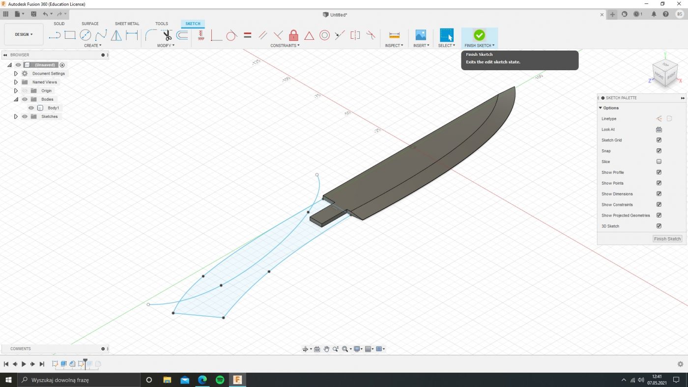 Projekty w tym środowisku możemy zacząć od rysunku wybierając funkcję Sketch i odpowiednią dla nas płaszczyznę. W tym momencie pojawia się dodatkowe środowisko służące rysunkowi. Nasze szkice służą do tworzenia jak i edycji późniejszych brył.