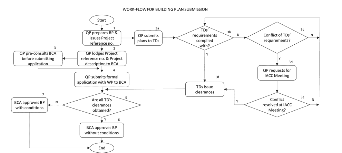 W Singapurze możliwe jest uzyskanie pozwolenia na budowę (lub innych kwestii związanych z sektorem budowlanym) drogą elektroniczną – bez wychodzenia z domu. Przed rozpoczęciem planowanych prac budowlanych należy złożyć aplikację od Building and Construction Authority (BCA). Złożeniem aplikacji zajmuje się wykwalifikowana osoba – najczęściej architekt lub inżynier posiadający odpowiednie uprawnienia (działający w imieniu klienta)